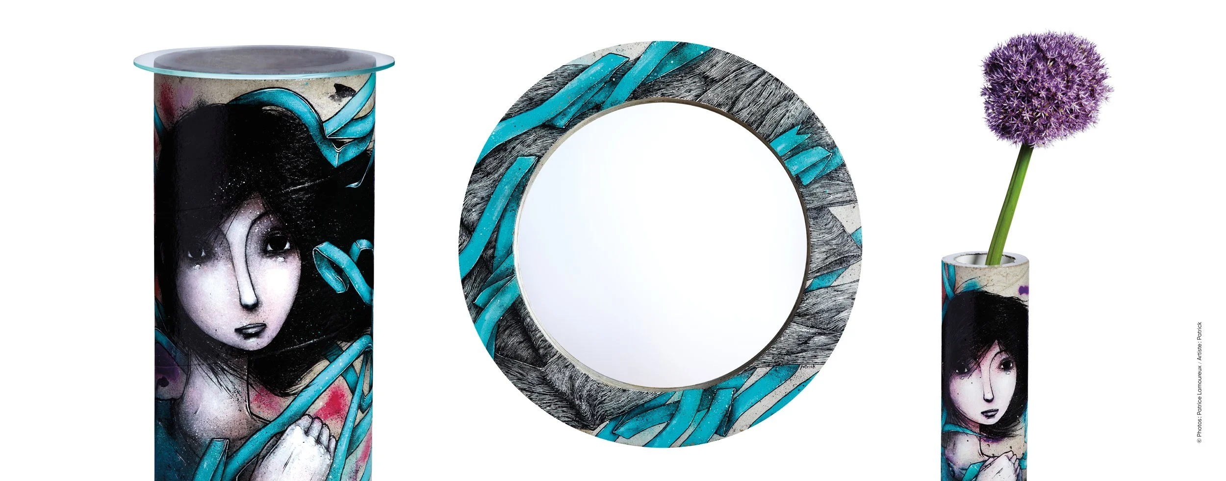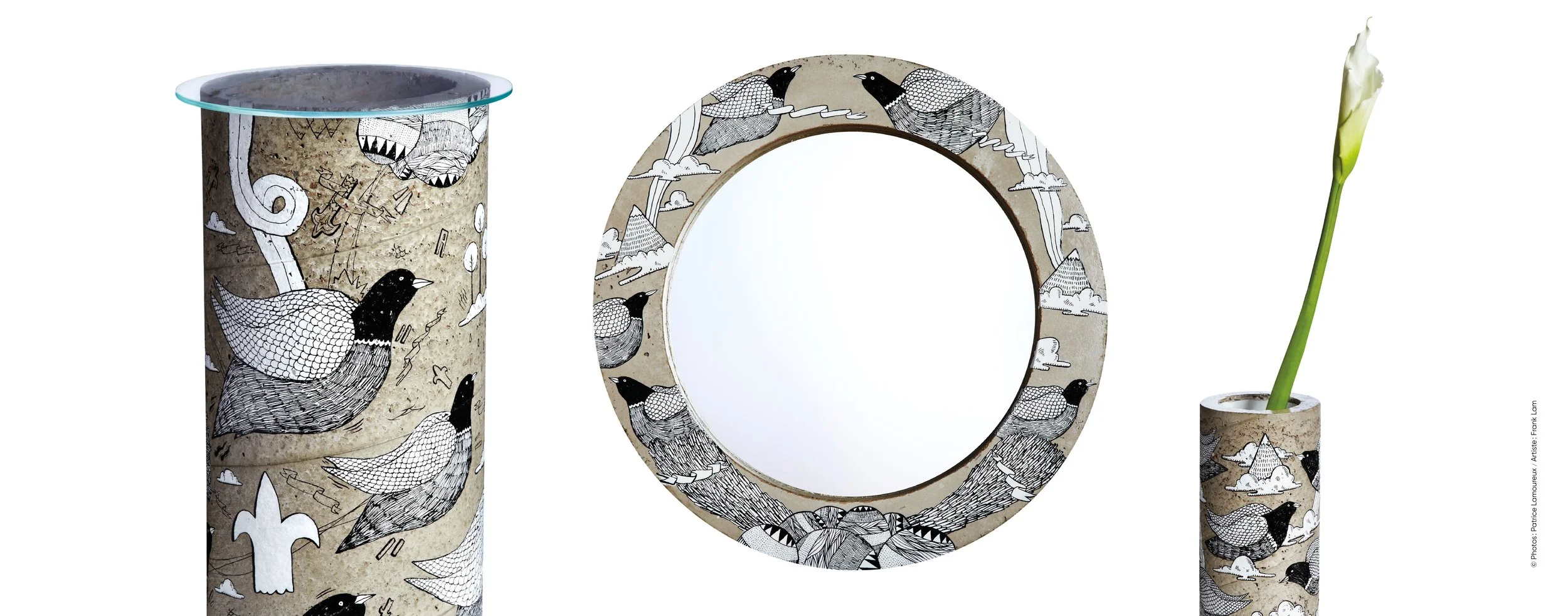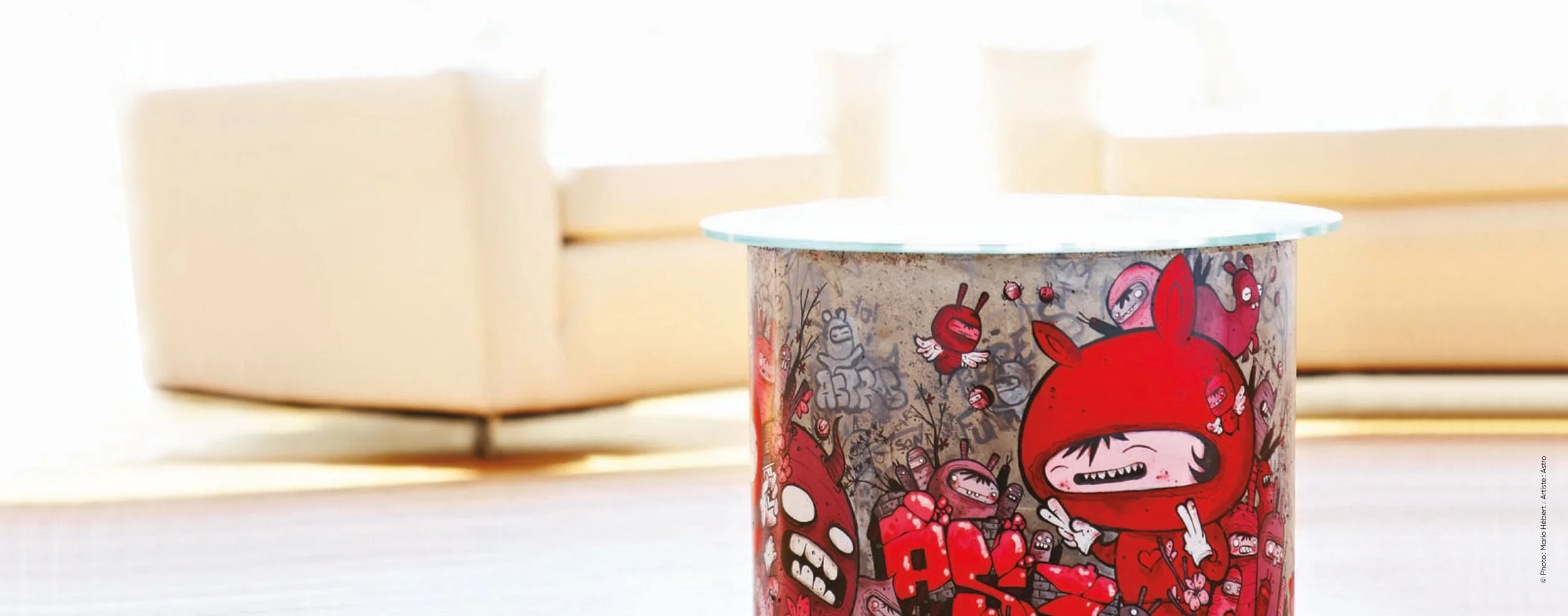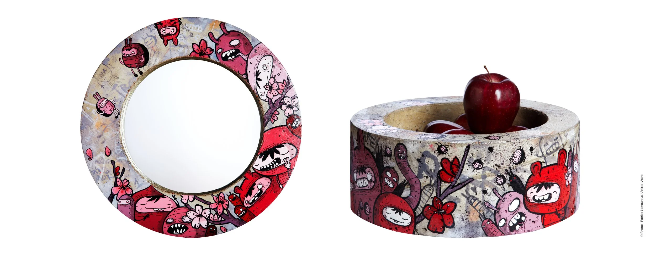 La toute première collection de TRASHbonbon allie béton, verre et miroir. Le concept ? Transposer le caractère industriel de Montréal sur des tables, des vases et des miroirs, et leur donner une âme en faisant appel à des artistes du graffiti. Entièrement conçue et fabriquée à Montréal, chaque pièce est une œuvre unique faite à la main. Au-delà d’être fonctionnels, le mobilier et l’objet deviennent des diffuseurs d’art.