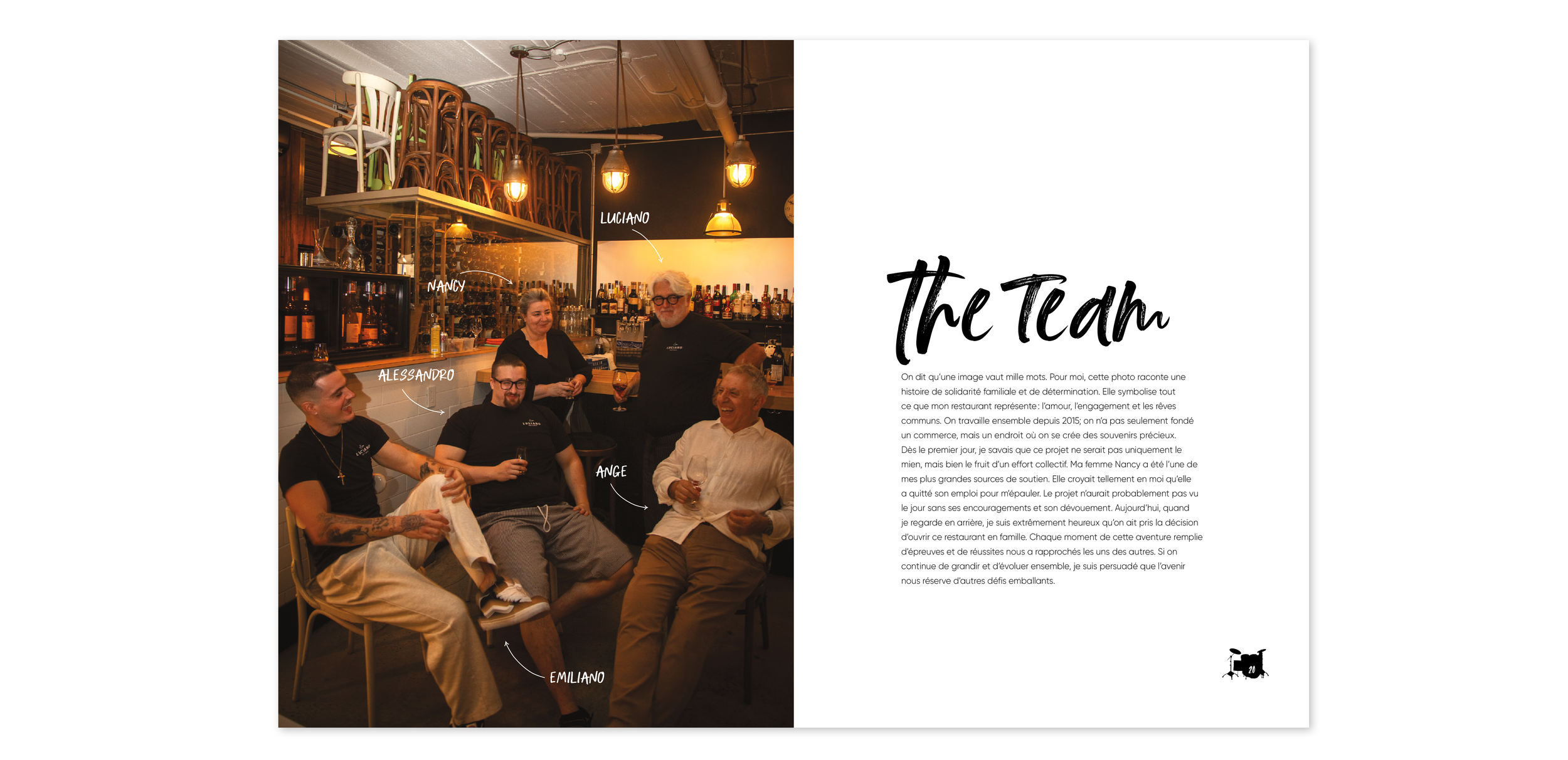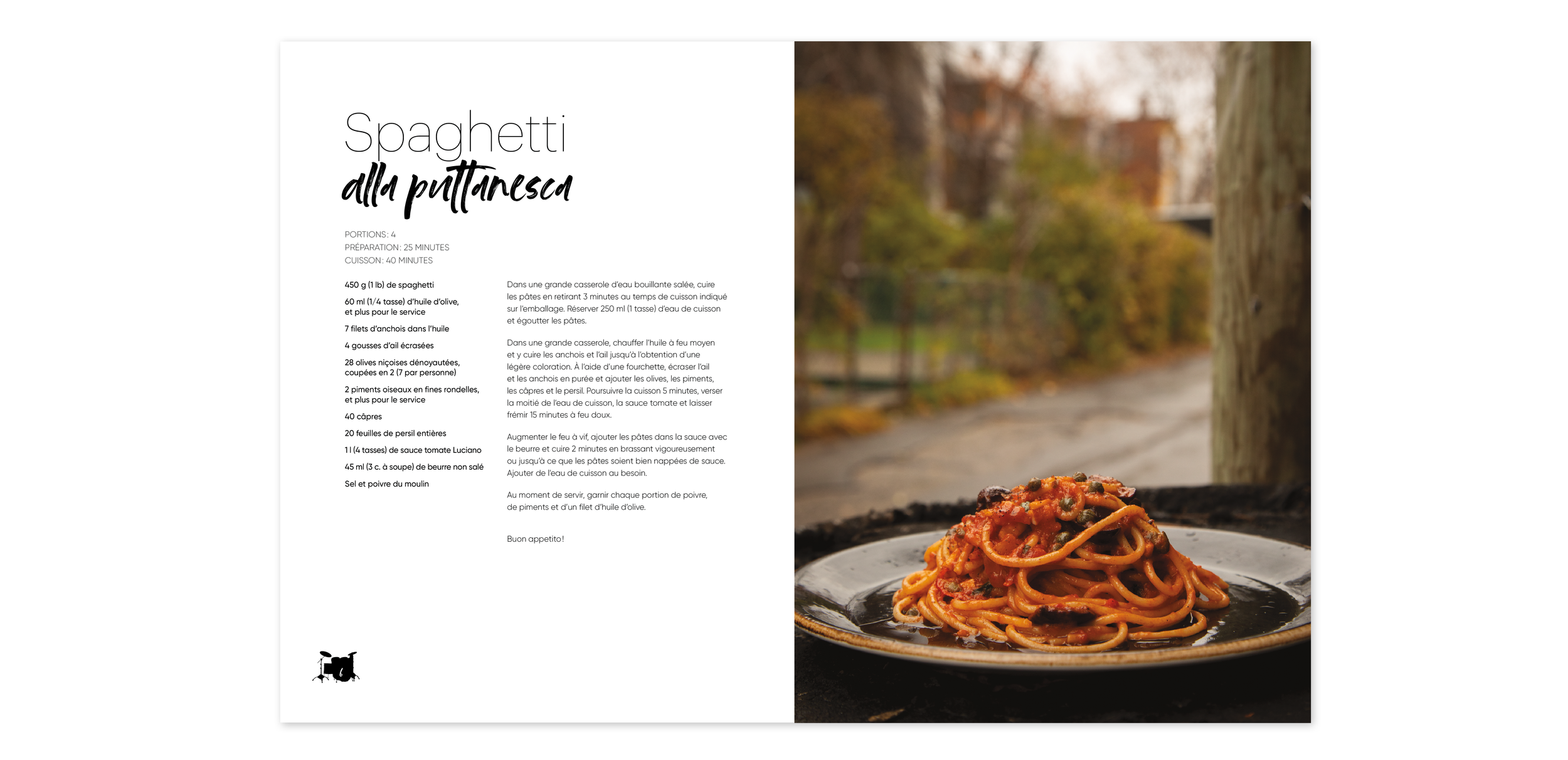 Ce projet de livre audacieux a été réalisé en collaboration avec le talentueux photographe Patrice Lamoureux et la styliste hors pair Marie-Ève Charron. Nadine Taillon a apporté son aide précieuse pour les textes et Laloutre a joué le rôle de directrice artistique, de designer graphique et de chargée de projet. Un merci sincère à Luciano de nous avoir fait confiance et, surtout, d’avoir laissé place à notre créativité collective.